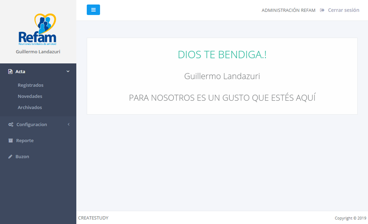 Esta es una aplicación especialmente diseñada para la gestión de las actas de cada refam. Con ella el usuario puede tener dentro de un solo lugar información como número de actas en tiempo real, lideres asignado a cada refam, asignar expositores a cada refam y ver el historial de una refam de cada zona, entre otras opciones.